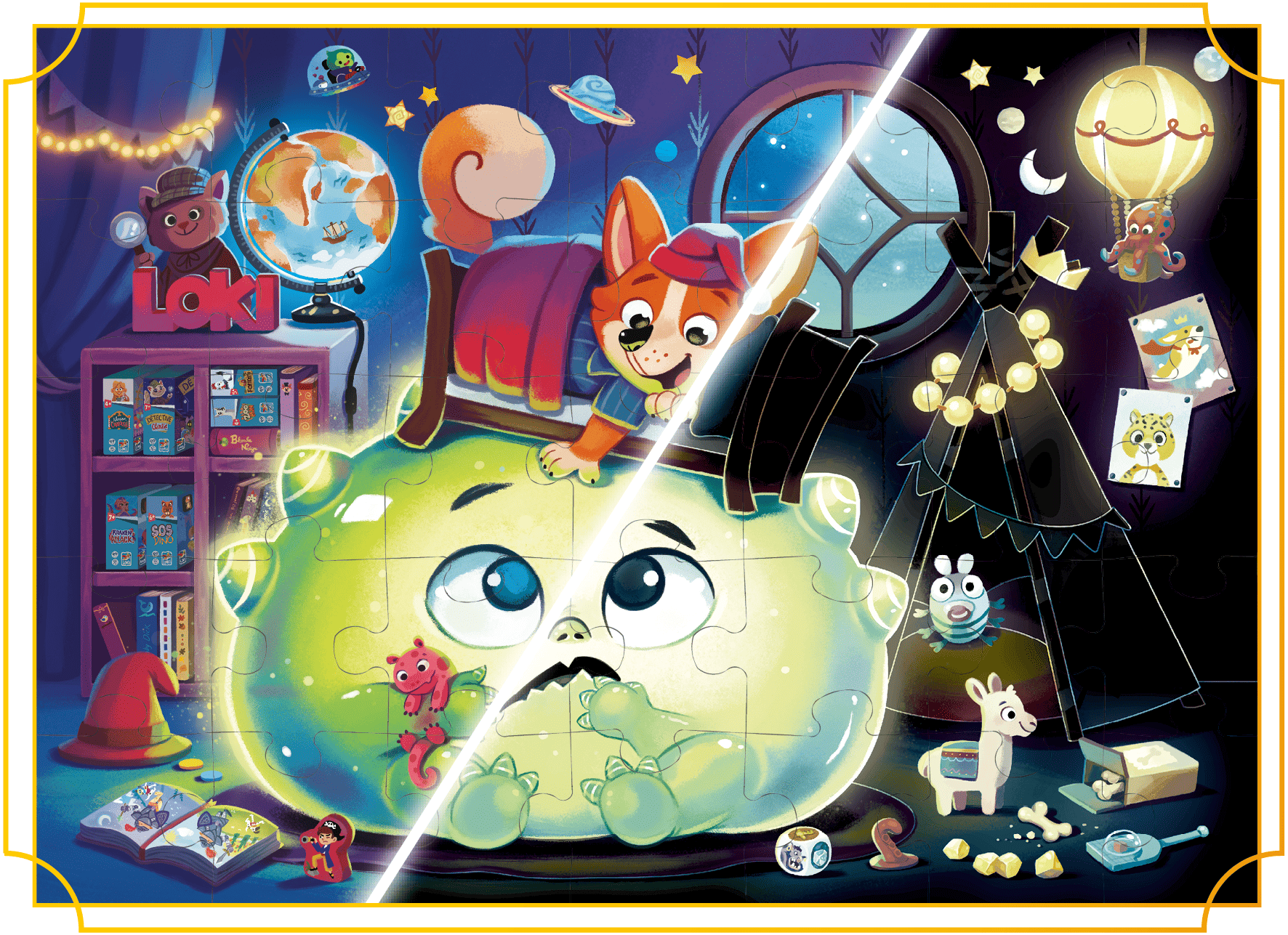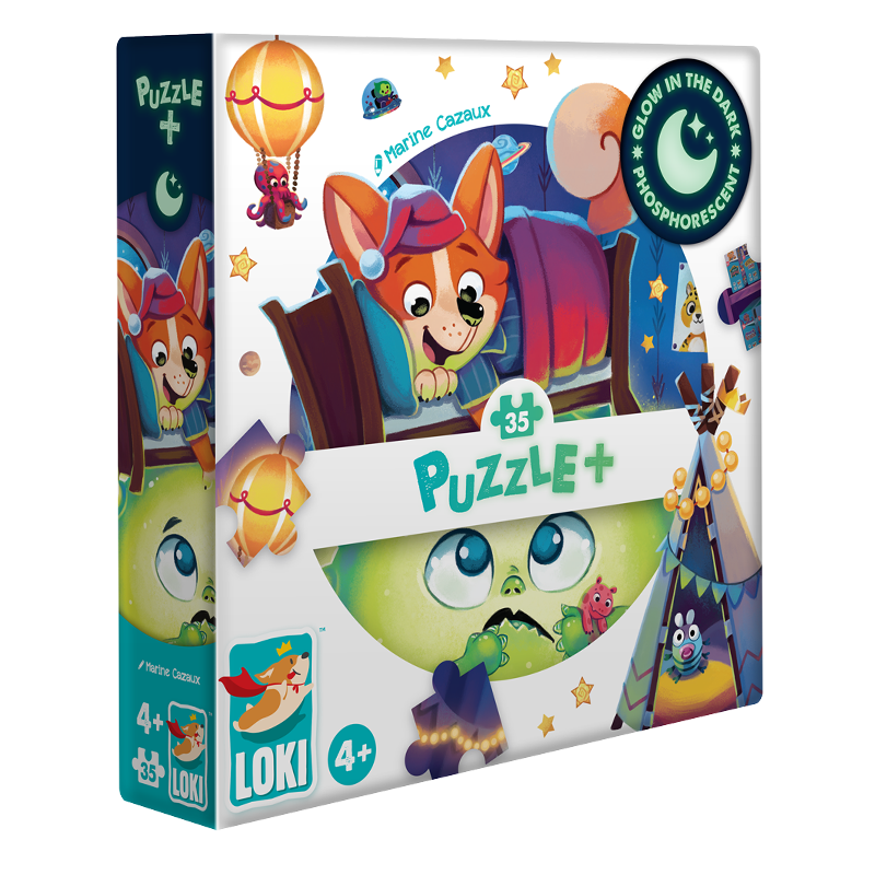 Les Puzzles + sont de retour ! Cette fois-ci, LOKI le facétieux corgi a eu une idée abracadabrante : des puzzles qui s’illuminent dans le noir… pour prolonger l’aventure même à la tombée de la nuit ! Chaque puzzle est basé sur une illustration unique spécialement conçue par une illustratrice enfant, que tu peux retrouver sur un joli poster accompagnant la boîte.